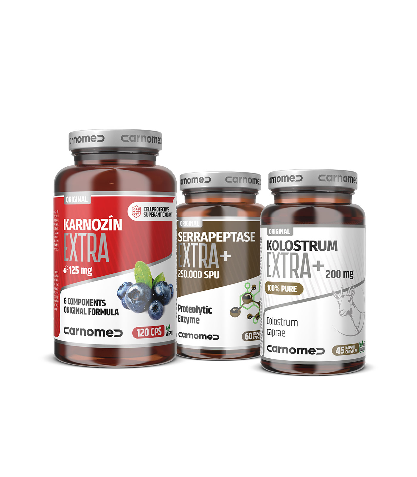 Kozí kolostrum EXTRA+ 45 cps + Serrapeptase EXTRA 60 cps + Karnozín EXTRA 120