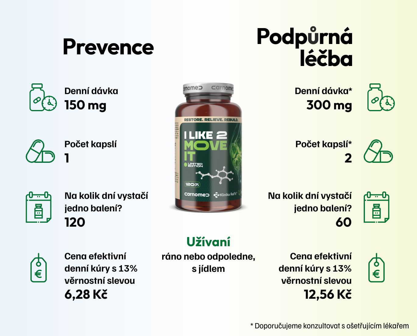Upozornění: Před užíváním doplňků stravy doporučujeme konzultaci s lékařem nebo odborníkem na výživu, zejména v případě zdravotních potíží, těhotenství nebo užívání léků.